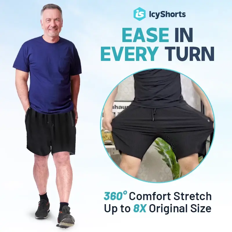 Embrace a world where fabric flexes with you. Icy Shorts, featuring 360° Comfort Stretch, expand up to 8X their size, ensuring every move is met with unmatched ease. Experience the ultimate freedom of movement, designed for life's every turn.